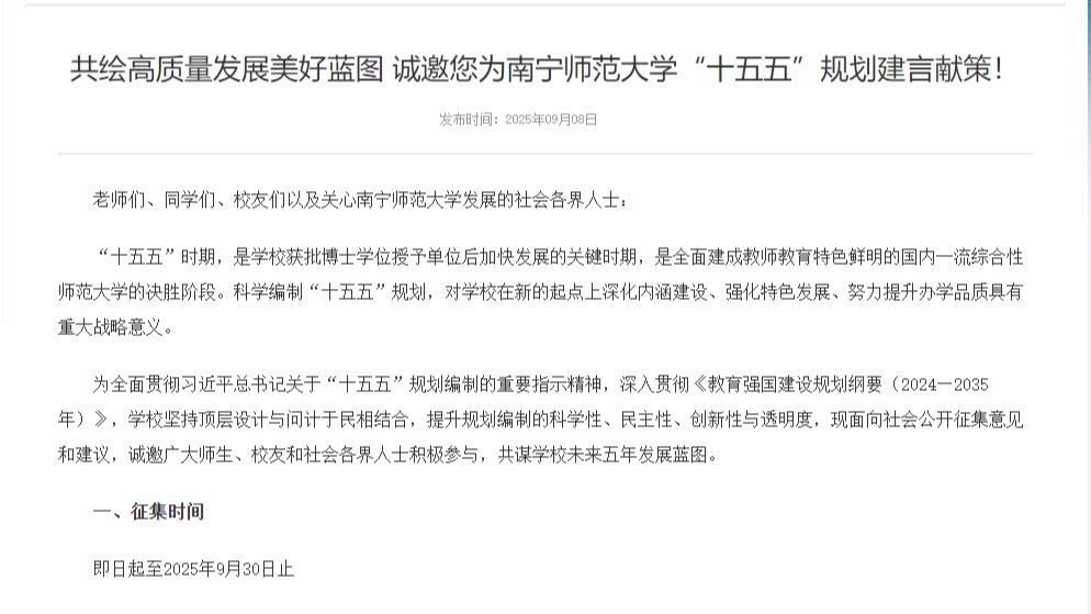 共绘高质量发展美好蓝图 诚邀您为南宁师范大学“十五五”规划建言献策!
